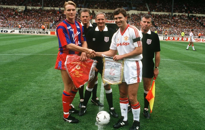 A temps plein, il y avait juste une chance de respirer, puis le temps supplémentaire passait dans un flou étourdissant avec la plupart des fans de Palace acceptant joyeusement le tirage honorable et une reprise. Puis, à quelques minutes de la fin, un corner a été tiré au premier poteau par Andy Thorn et Alan Pardew l’a emporté sans cérémonie depuis quelques mètres. Nous étions presque trop incrédules et trop épuisés pour célébrer, mais nous avons essayé et le Holte End était encore une masse de corps engloutis dans le délire. Il était normal que tous les objectifs du Palace ce jour-là aient été marqués à la fin où la majorité des fans étaient rassemblés, ce qui permettait des célébrations intimes avec les joueurs.Aussi délirant et peu glamour que tous les autres ce jour-là, c’est le but qui a forgé la réputation de Pardew en tant que légende du club. Liverpool était visiblement choqué et la faillibilité exposée ce jour-là a vu les premières fissures apparaître dans la légende. l’emprise qu’ils avaient eu sur le football anglais au cours des deux décennies précédentes. 1990 était la dernière fois qu’ils ont remporté le titre de la ligue, ce qui pourrait être considéré comme leur moment décisif. L’équipe qui devait les remplacer en tant que force dominante attendait Palace en finale après que Manchester United d’Alex Ferguson se soit contenté de la deuxième division Oldham après une reprise. Pour Coppell, c’était la tempête parfaite, car il était né à Liverpool et était devenu membre à part entière des États-Unis pendant près de 10 ans, ainsi que d’un international anglais bien établi, jusqu’à ce que les blessures réduisent sa carrière.Facebook Twitter Pinterest Steve Coppell et Alex Ferguson ont mené les équipes sur le terrain de Wembley. Photo: Colorsport / Rex / Shutterstock